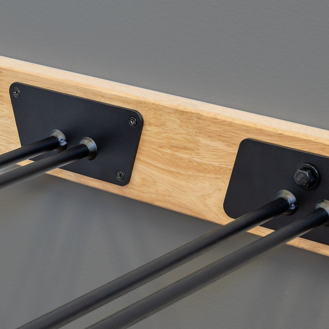 Store your ski collection in style with an organizer made from real wood and heavy-duty steel. With furniture-quality materials, this ski rack is right at home indoors or in the garage.