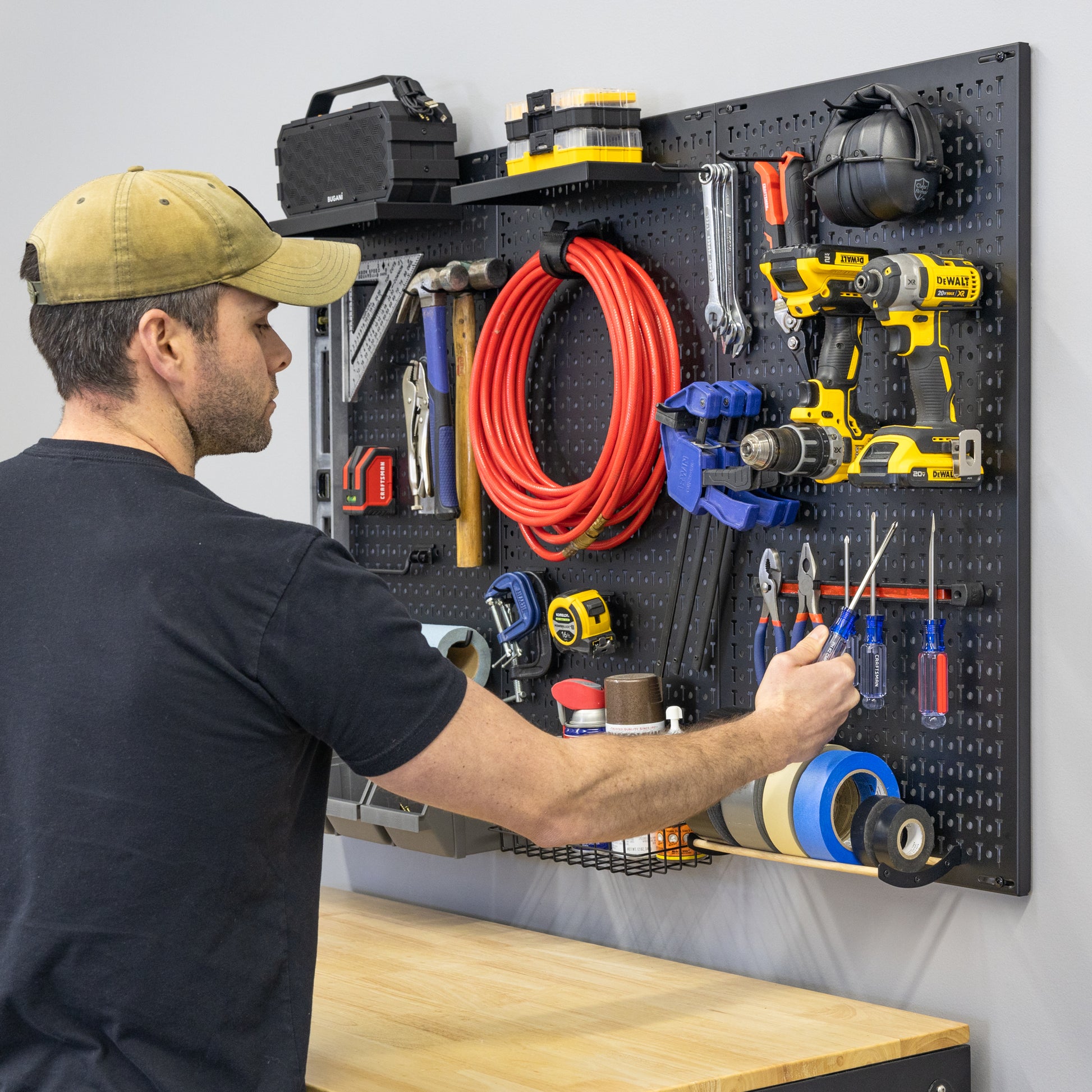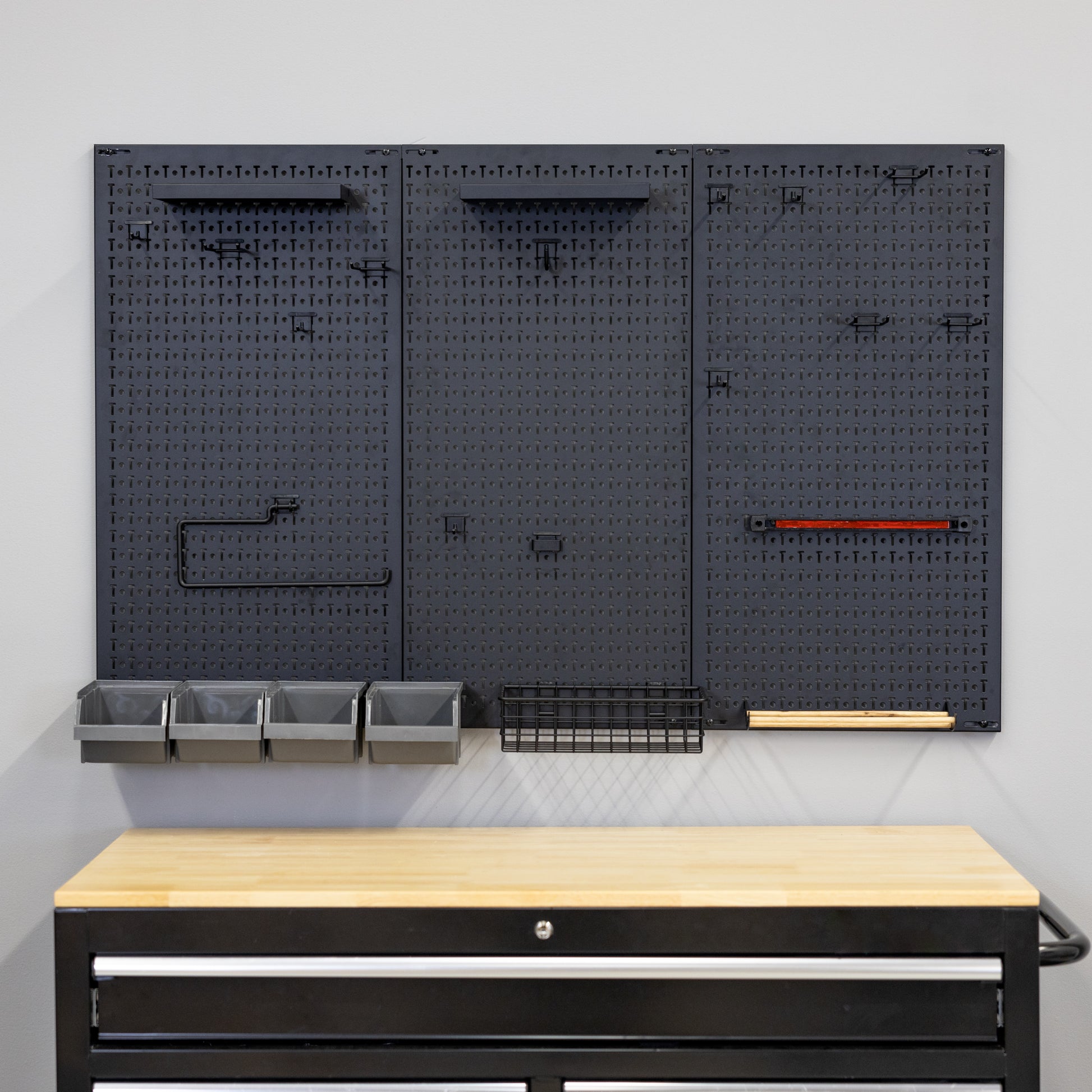 - Comes with (3) heavy-duty steel pegboard panels and (23) assorted pegboard attachments, including a magnetic tool organizer