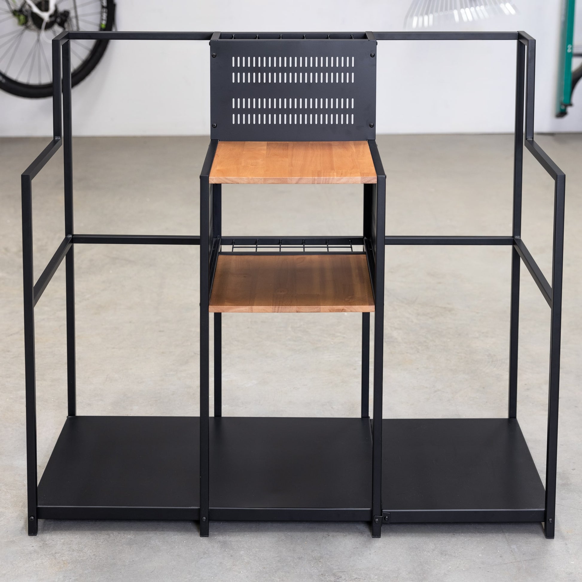 - Stylish, furniture-quality design made from solid hardwood shelving & an alloy steel frame